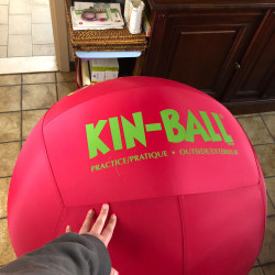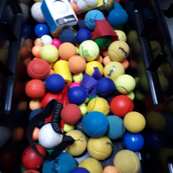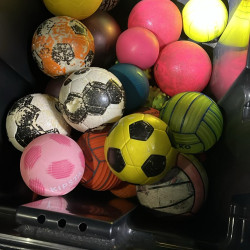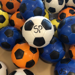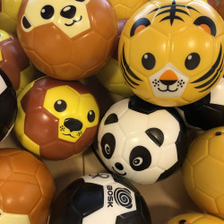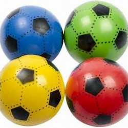 De gele mousse "voetballen" of de blauwe mousse ballen.